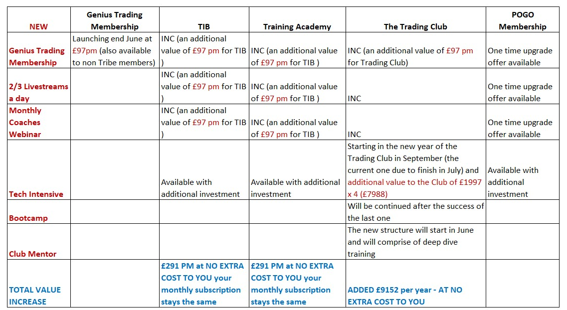 As a result - we are going to restructure how some things work in the TRIBE!